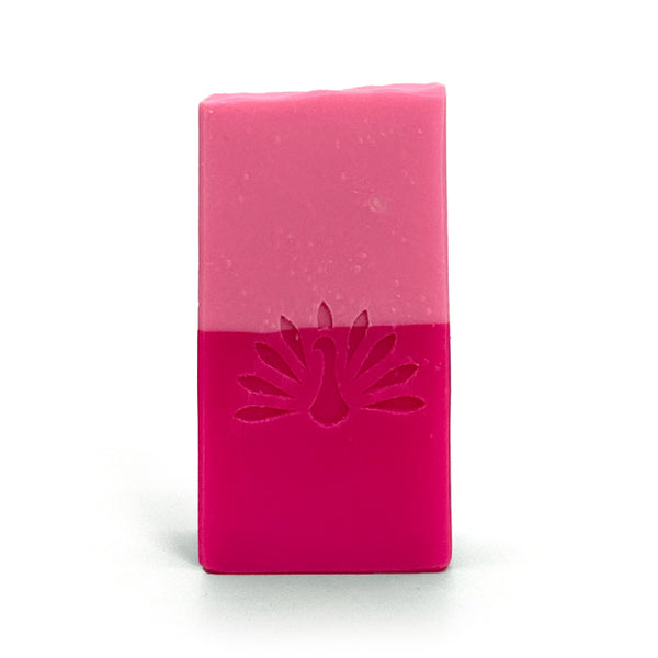 Bright, bold, and impossible to ignore. Flirt teases the senses with zesty bergamot, juicy lychee, and a swirl of red tea and rose petals. Jasmine and geranium add a floral heart, while sandalwood adds a touch of warmth. With its vibrant neon-pink base and soft blush top, this bar is pure charm in soap form.