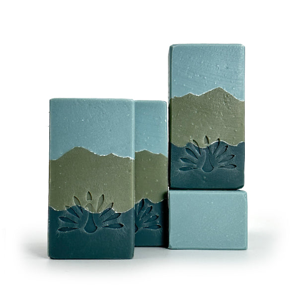 Escape to a serene winter landscape with Frozen. Designed to resemble a majestic mountain range behind dark, cold lake, this soap captures the essence of crisp winter air. Infused with refreshing Peppermint and soothing Eucalyptus essential oils, Frozen invigorates the senses while offering a cooling, revitalizing cleanse. Perfect for those seeking a breath of fresh mountain air in their daily routine.