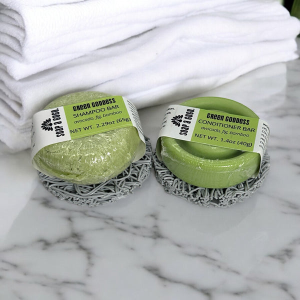 A thoughtful gift for eco-conscious living! This set includes your choice of shampoo and conditioner bars, paired with two mini soap lifts to keep them dry and lasting longer. Perfect for a greener routine!